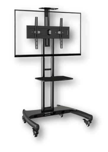 Economic Series Floor Stand Suitable for 32”-55” Display, available in various areas including home, offices, conferences, restaurants, hospitalities and more. Height adjustable mounting plate allow for adjusting to the desired height. The toolless tilt adjustment provides the optimal viewing angle. Height-adjustable camera shelf included is ideal for teleconference meetings. four locking casters make this Display easy to move and stop at will. The height adjustable equipment shelf provides an extra storage for small devices. Integrated cable management keeps a clean appearance